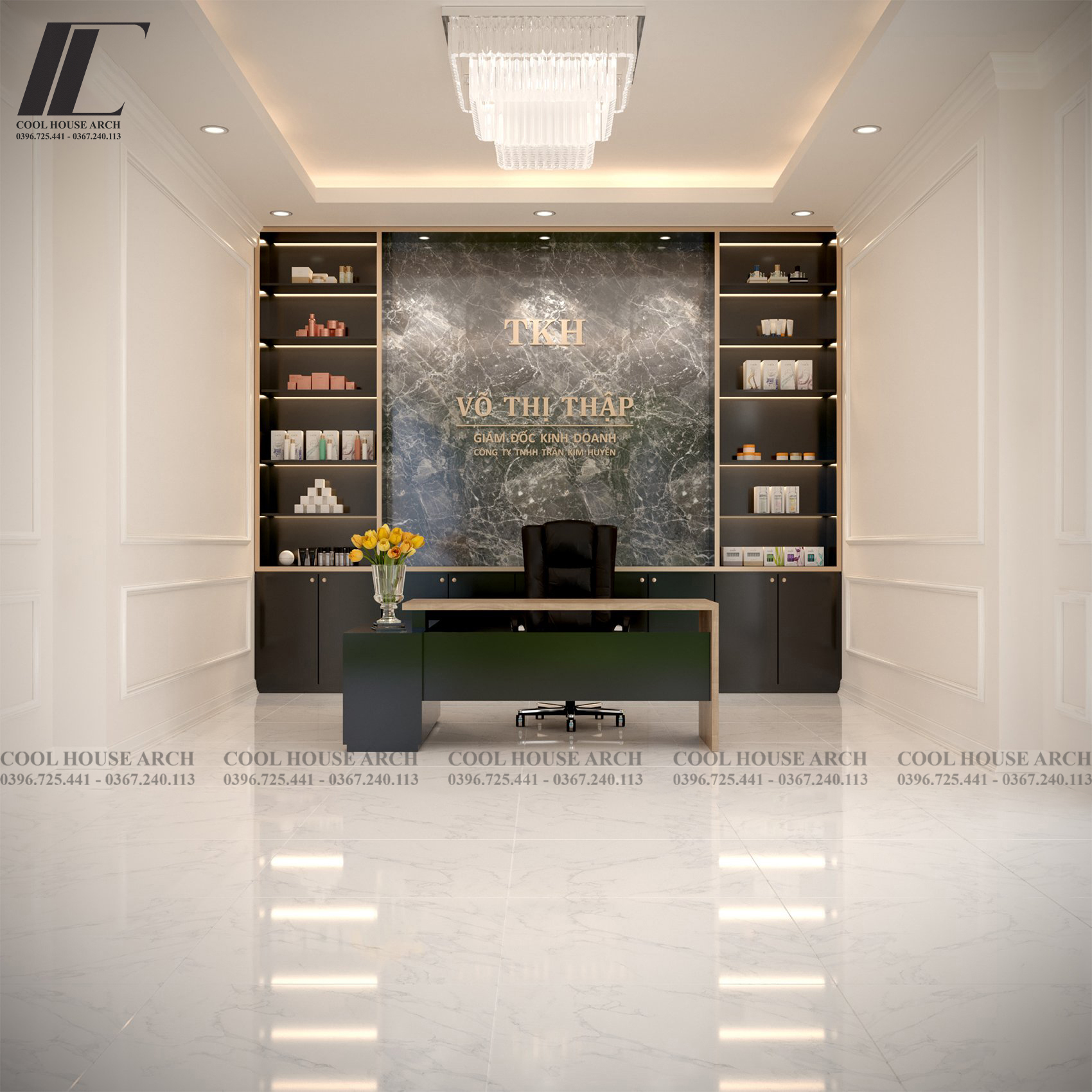 Không gian nội thất phòng làm việc đầy đủ tiện nghi.