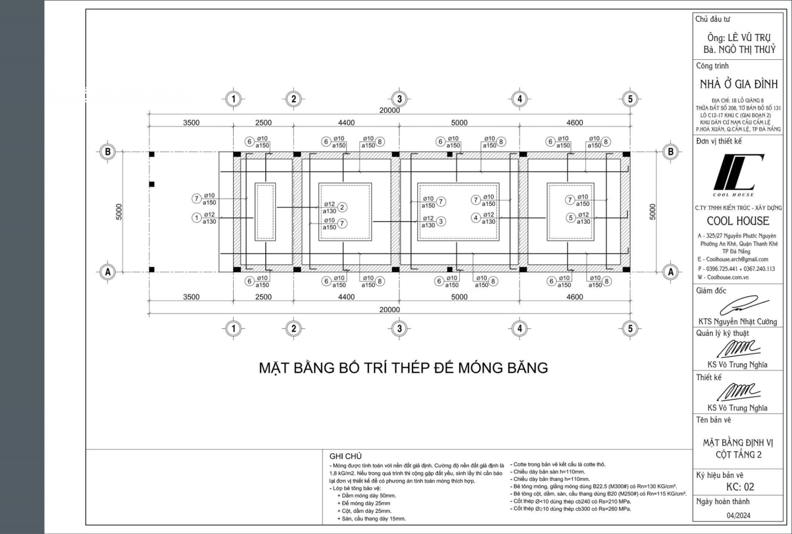🔹Mặt bằng định vị cổ móng: Là bản vẽ định vị thi công đầu tiên của căn nhà, thể hiện rõ vị trí cổ móng, kích thước, hệ trục toàn nhà.
