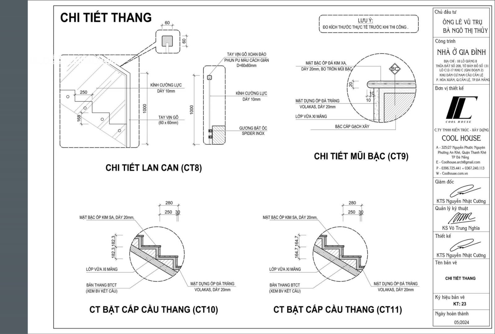 🔹Chi tiết hoàn thiện cầu thang: Kích thước hoàn thiện bậc thang, lan can, tay vịn...