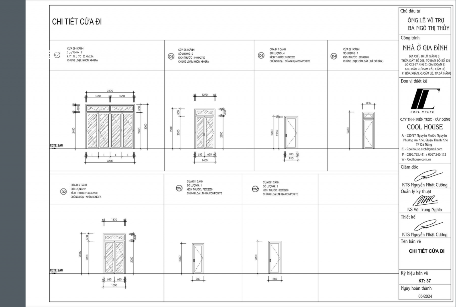 🔹Chi tiết toàn bộ cửa đi cửa sổ, thể hiện kích thước, số lượng, chủng loại các cửa trong nhà....