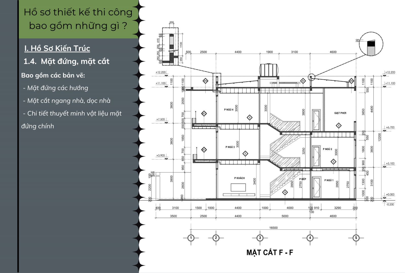 Ngoài ra trong các mặt cắt mặt đứng sẽ được trích các chi tiết thi công cơ bản.