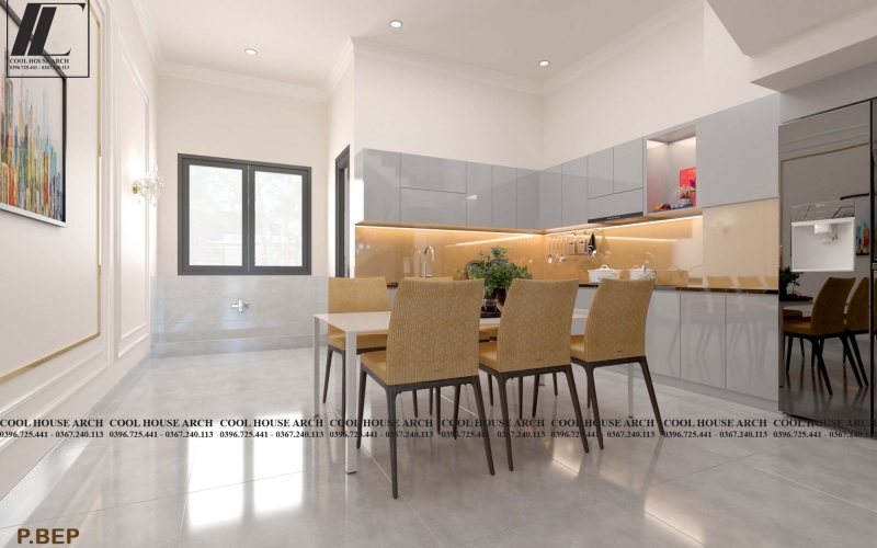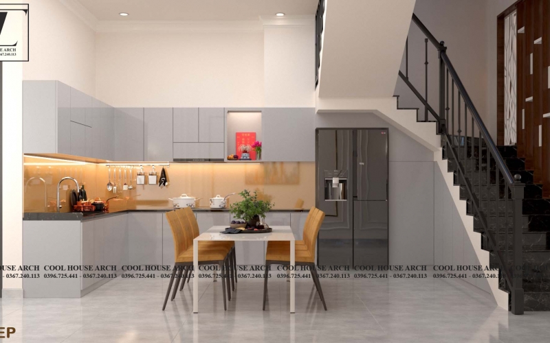 Thiết kế nội thất phòng bếp hiện đại nhà phố 3 tầng