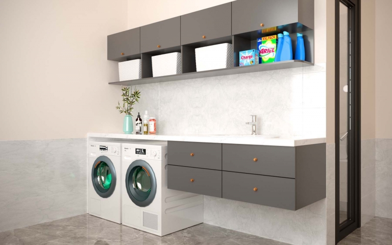 Khu giặt phơi được thiết kế đầy đủ tiện nghi tạo sự gọn gàng.