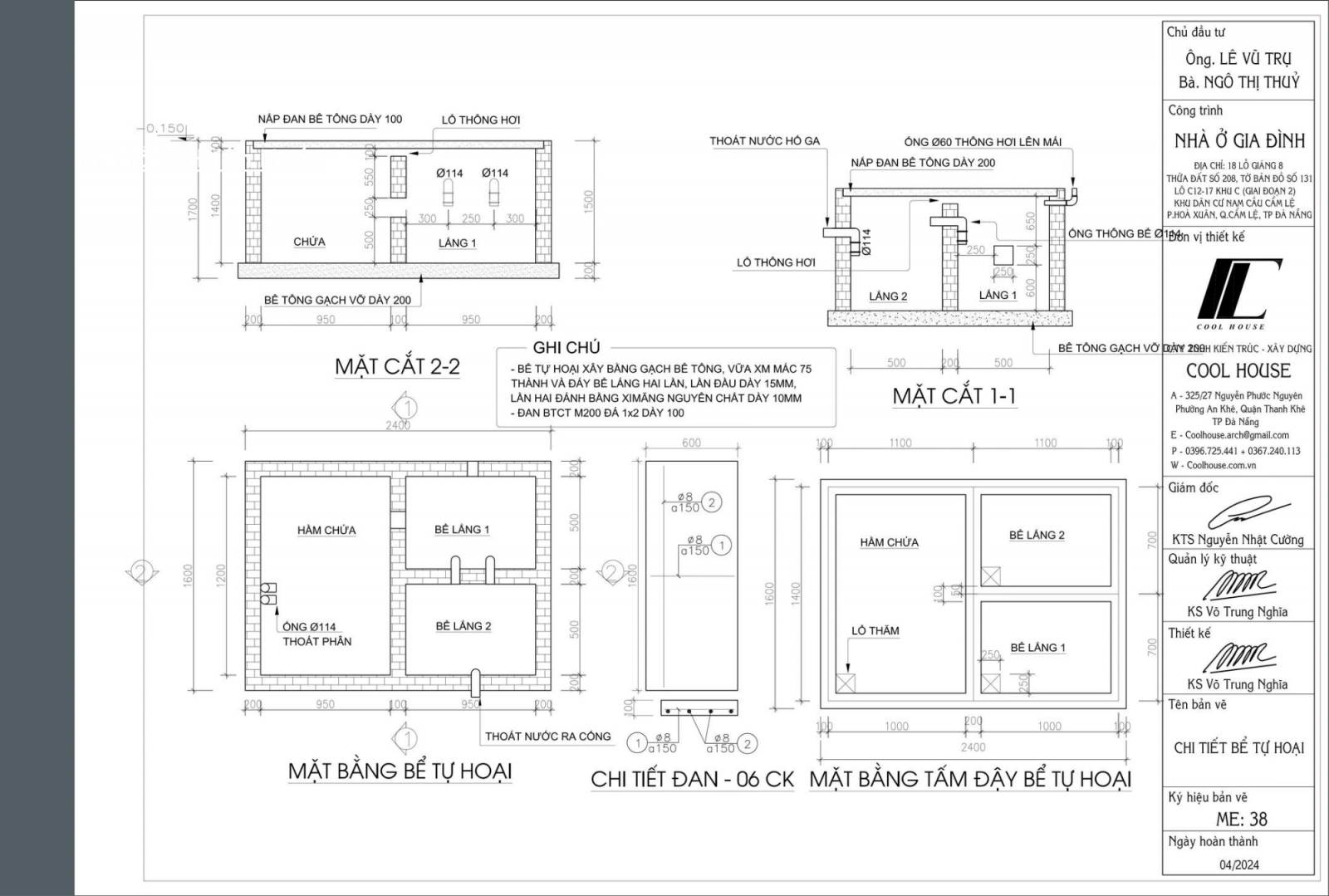 🔹Chi tiết kích thước và bố trí thép toàn bộ phần ngầm: bao gồm móng, cổ móng, đà kiềng, bể tự hoại...