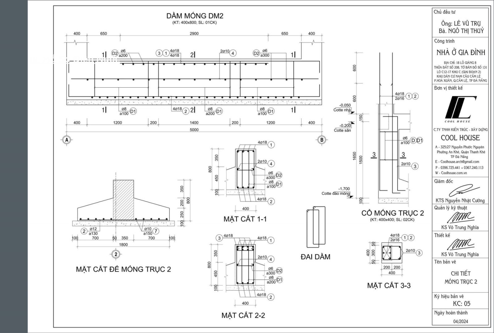 Ngoài ra trong các mặt cắt mặt đứng sẽ được trích các chi tiết thi công cơ bản.