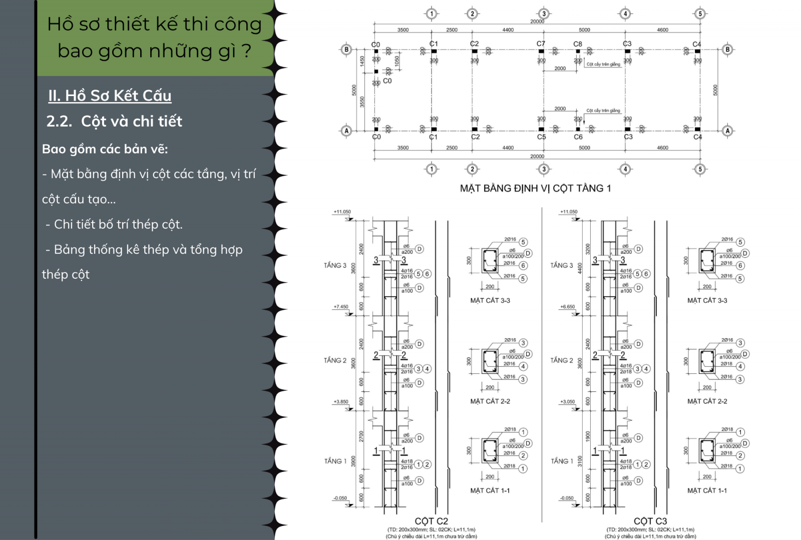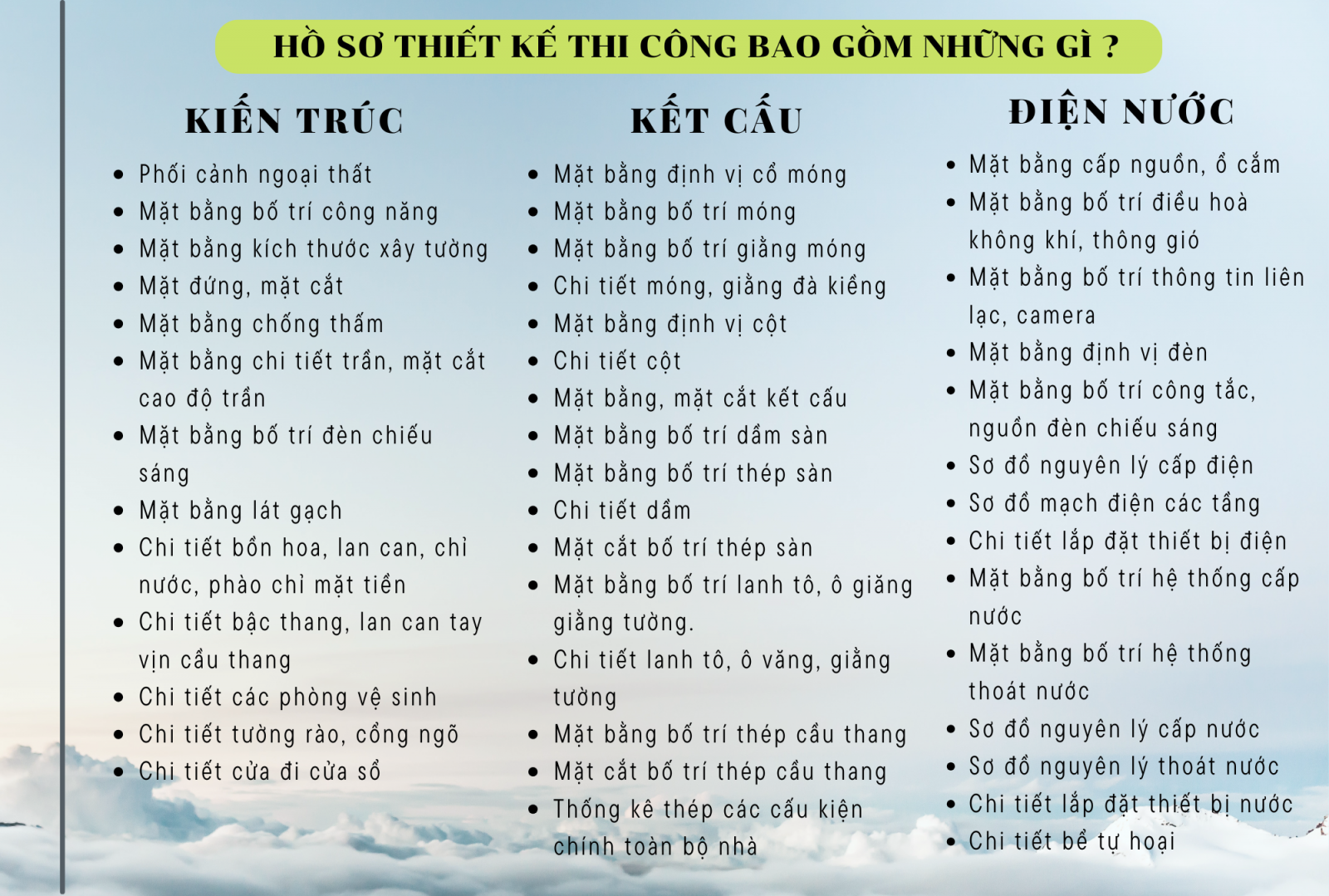 Hồ sơ thiết kế thi công gồm 3 phần chính