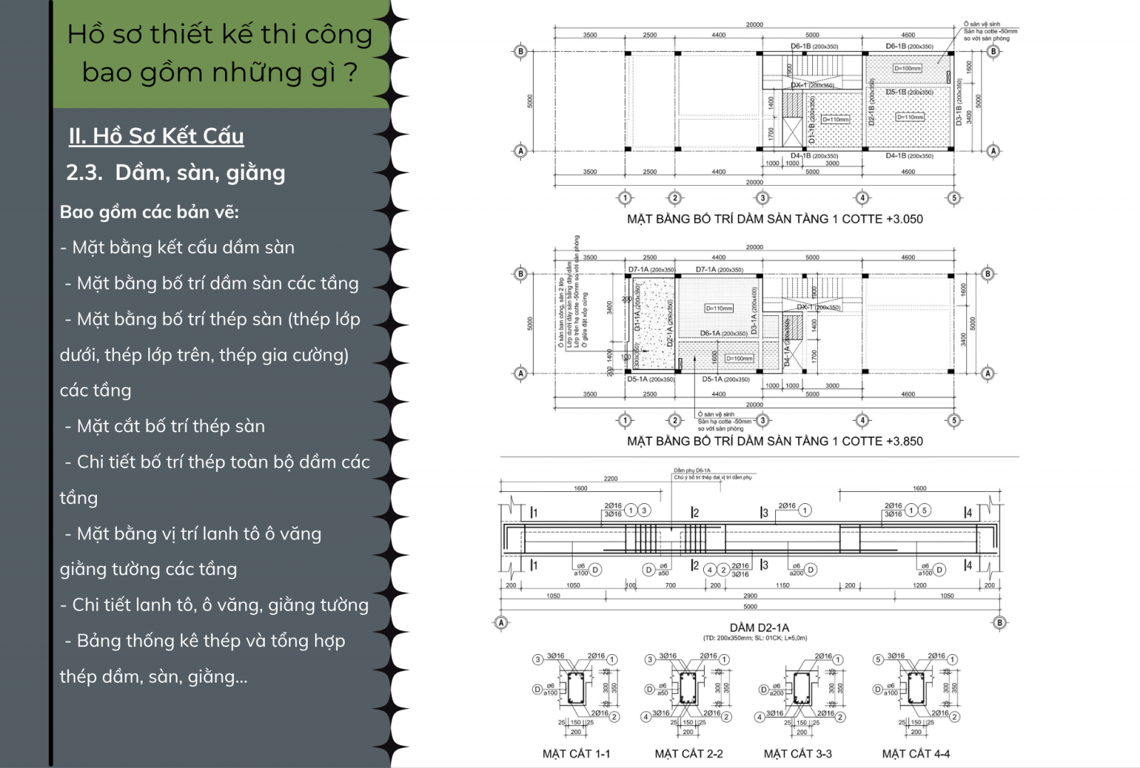 Dầm, sàn, giằng và chi tiết bao gồm: