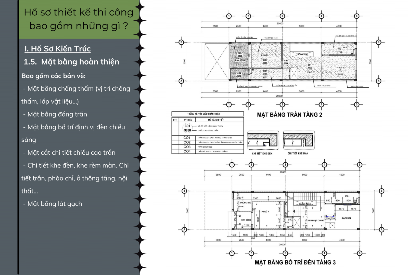Bản vẽ chi tiết kỹ thuật: Đây là các bản vẽ chi tiết quan trọng để hoàn thành ngôi nhà theo mong muốn ban đầu của gia chủ, bao gồm các chi tiết hoàn thiện và chi tiết kỹ thuật