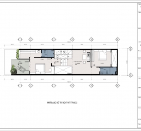 Tầng 2 gồm phòng sinh hoạt chung, hai phòng ngủ và hai vệ sinh khép kín. Đây là tầng mang ý nghĩa kết nối – nơi mọi thành viên có thể trò chuyện, chia sẻ và quây quần cùng nhau.