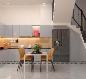 Thiết kế nội thất phòng bếp hiện đại nhà phố 3 tầng